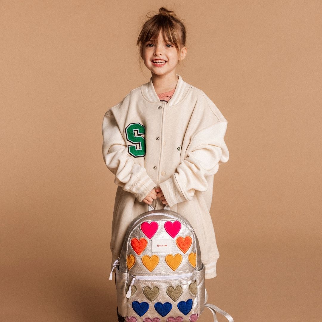 Kane Backpack in Metallic Fuzzy Hearts - OS is backordered and will ship as soon as it is back in stock.