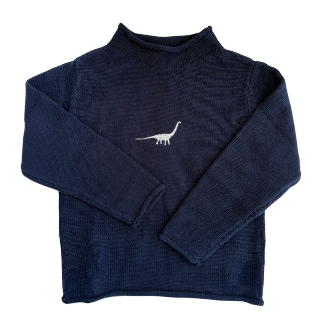 Dinosaur Rollneck Sweater in Navy - navy blue / 2 is backordered and will ship as soon as it is back in stock.