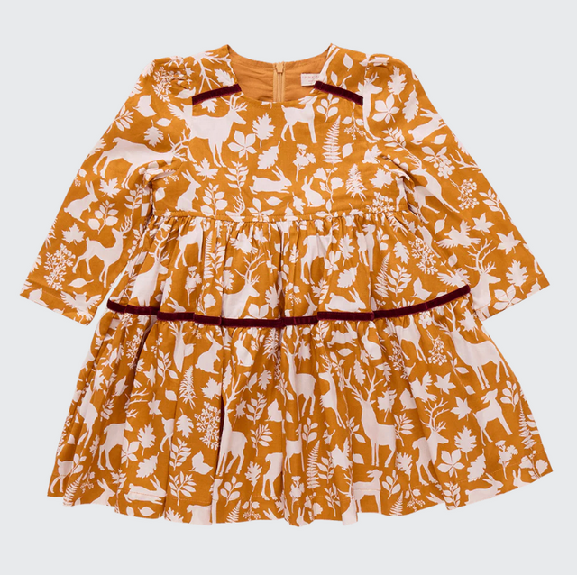 Collection Classic! Whether covered in a field of Fall flowers or a swirling embroidered floral, Pink Chicken's classically tailored Girls Brooke Dress is ready for anything and everything this season. Signature details include a rounded neck, twirl worthy full skirt, gathered puff sleeve and glitter buttons at the back.