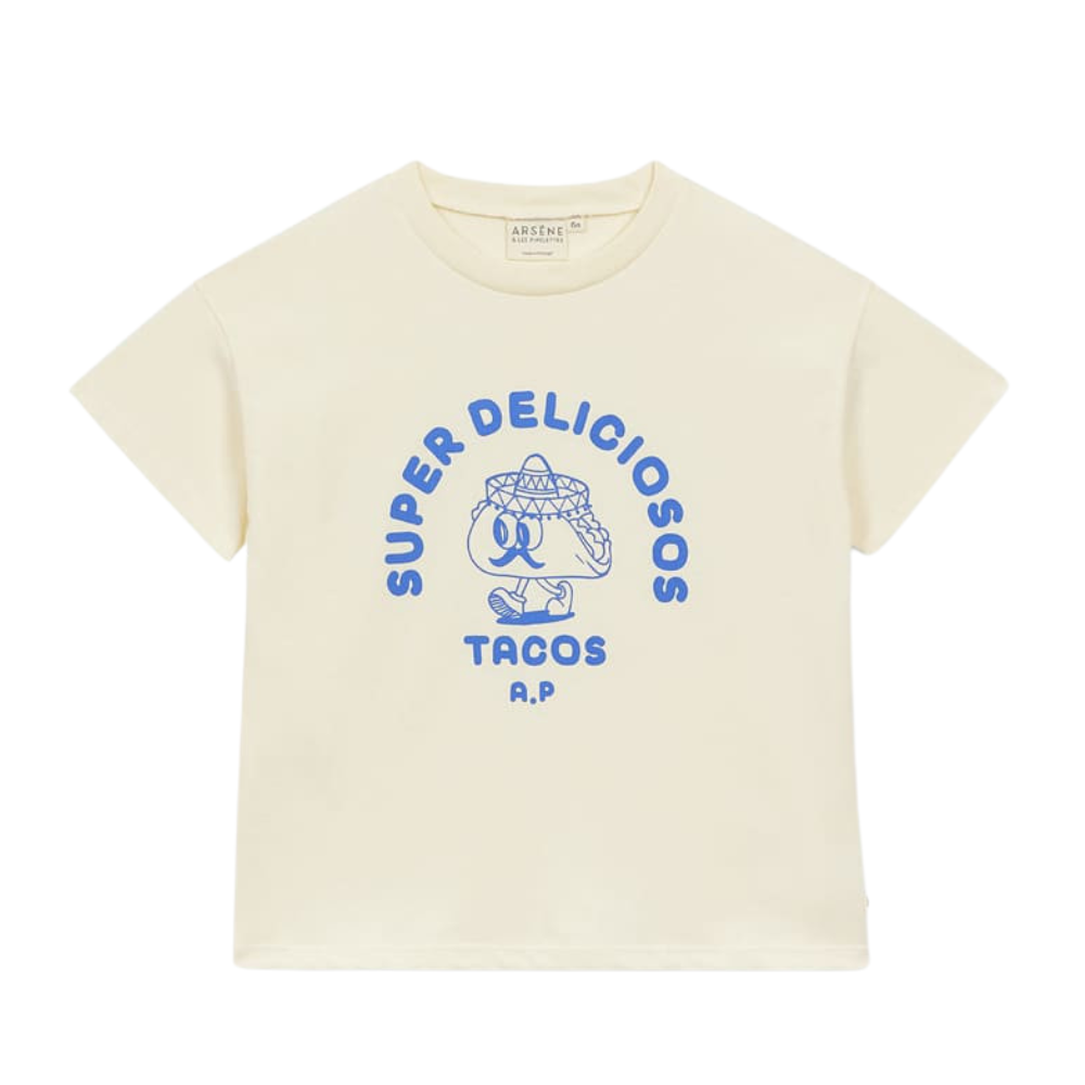 Super Tacos T-Shirt in Cobalt - 3 is backordered and will ship as soon as it is back in stock.