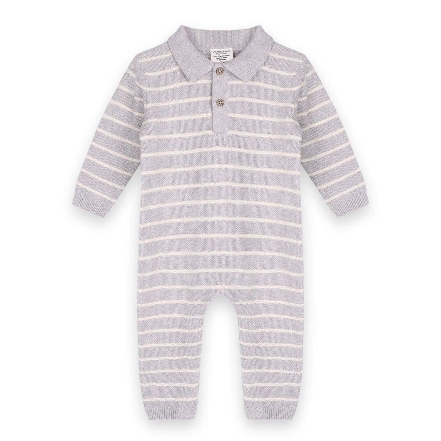 Stripe & Collar Sweater Jumpsuit in Heather Grey - 3-6m is backordered and will ship as soon as it is back in stock.