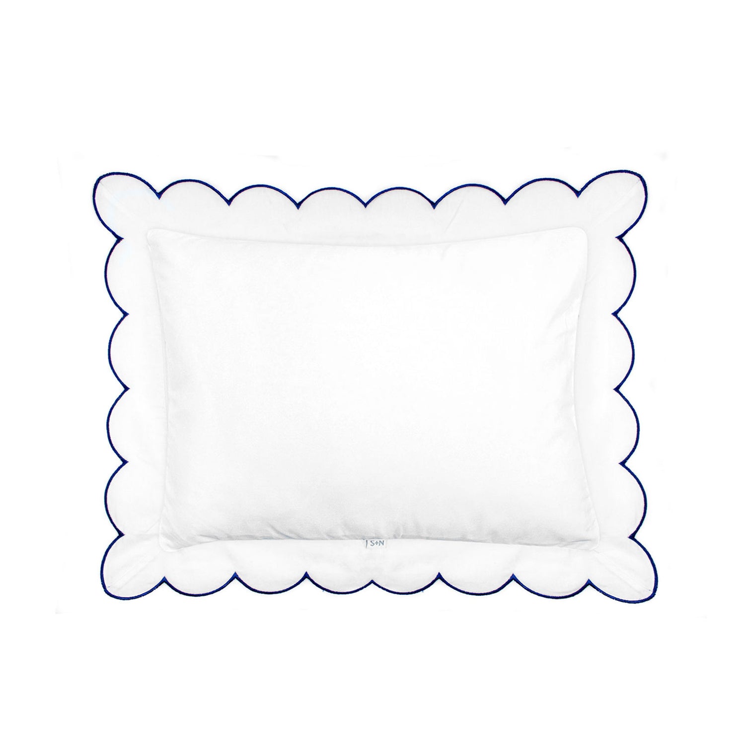 Scalloped Trim Pillow in Navy - OS is backordered and will ship as soon as it is back in stock.